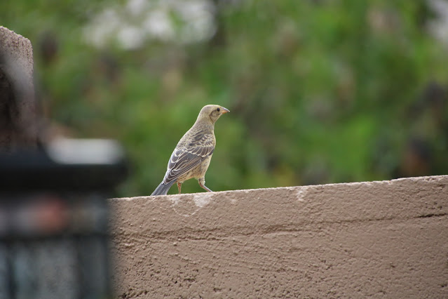 | Juvenile brown-headed towhee in my Phoenix backyard. |
